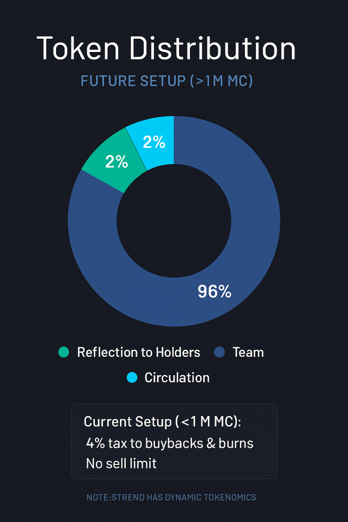 Under $1M MC, a 4% tax is used 100% for buybacks & burns—systematically reducing circulating supply.