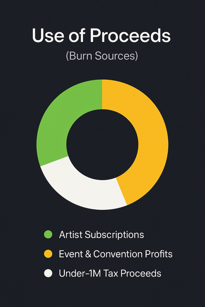 Profits from concerts and conventions help fuel additional burns, while holders get exclusive discounts.